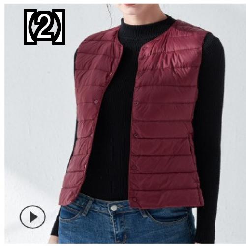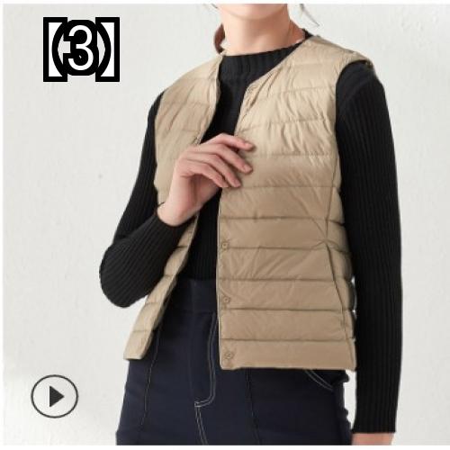 ベスト レディース 秋冬 おしゃれ トップス 無地 ダウン ラウンドネック 軽量 大きいサイズ 暖かい ホワイト グレー 黒