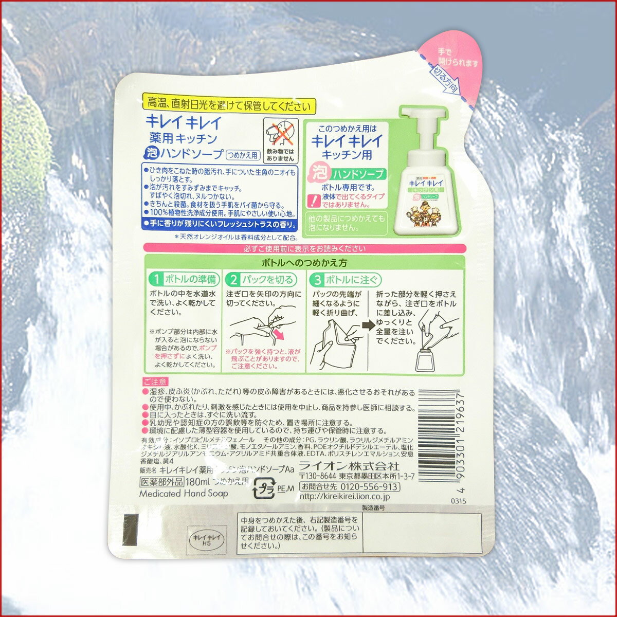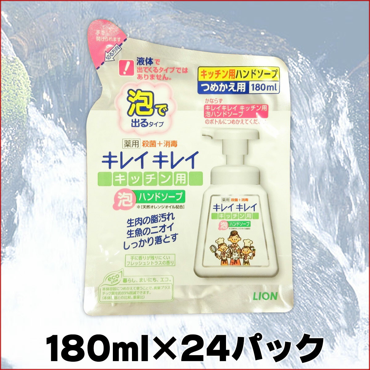 品名: キレイキレイ 薬用キッチン 泡ハンドソープ つめかえ用 製造: ライオン 容量: 180ml 入数: 24パック ケース番号: 219637 JANコード: 4903301219637 ※メーカー都合により デザイン等が予告なく変更になることがあります。