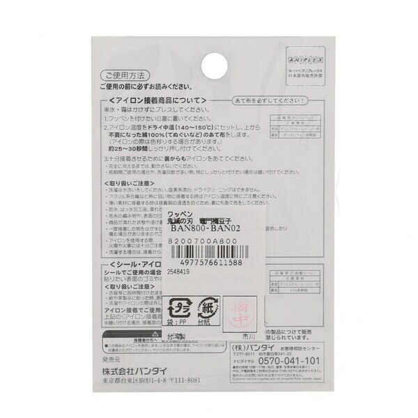 ※長時間つけたままにしておくと接着剤が張った面に付着することがあります※紙や革製品に貼った時、表面がはがれる恐れがあります布製品にアイロン接着する場合は1、ワッペンをつけたい位置に置いてください2、ワッペンの上からあて布をして、上からドライ中温(140〜150度)にしたアイロンで約20〜30秒しっかりと押し付けてください3、十分に接着させるために裏からもアイロンをあててください※あて布は不要になった綿100%の布地を使用してください(アイロンの際に色移りする可能性があります)※完全に冷えるまで動かさないでください※長時間ご使用になるものや洗濯回数の多いものなど特に強く付けたい場合は縫い付けてご使用くださいサイズ:約 52×63mm品番BAN02この商品について 必ずご確認ください配送についてメール便での配送になります。
