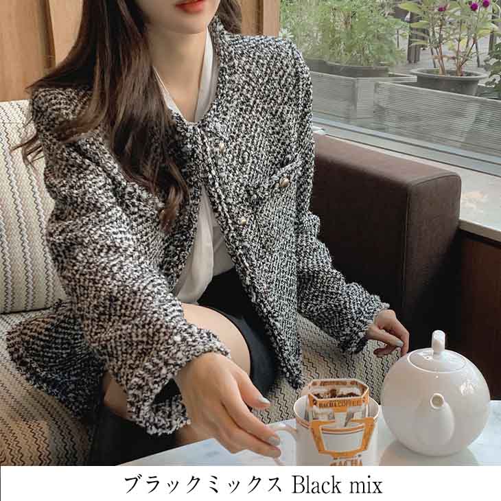 【クーポン利用で半額】ノーカラージャケットレディース ジャケット アウター ツイード ツイードジャケット アウター 長袖 ライトアウター 可愛い お洒落 秋冬 大人 レディース 韓国ファッション 【aot208-410】【予約販売:9月27日入荷予定順次発送】【送料無料】宅込
