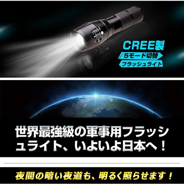 懐中電灯 LED懐中電灯 フラッシュライト 米国 軍事LED懐中電灯 XM-L T6 1灯搭載 防水 led 強力 自転車ライト