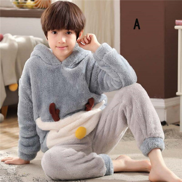 キッズパジャマ 子供パジャマ 男の子 もこもこ 寝巻き 冬 かわいい おしゃれ ルームウェア ふわふわ 裏起毛 可愛い 韓国 部屋着 誕生日 プレゼント ペンギン ブタ ウシ シカ 動物 アニマル フード付き 長ズボン
