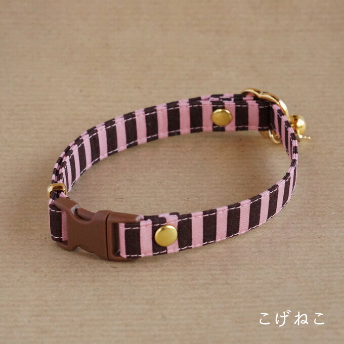 【ストライプの首輪(いちごチョコ)】 / 3サイズから選べる / 猫用首輪 / 鈴の有無も選べる / 自由に選べるパーツ / 安全首輪 / ハンドメイド / オーダーメイド / こげねこ / ねこ / ペット用品 / 猫首輪
